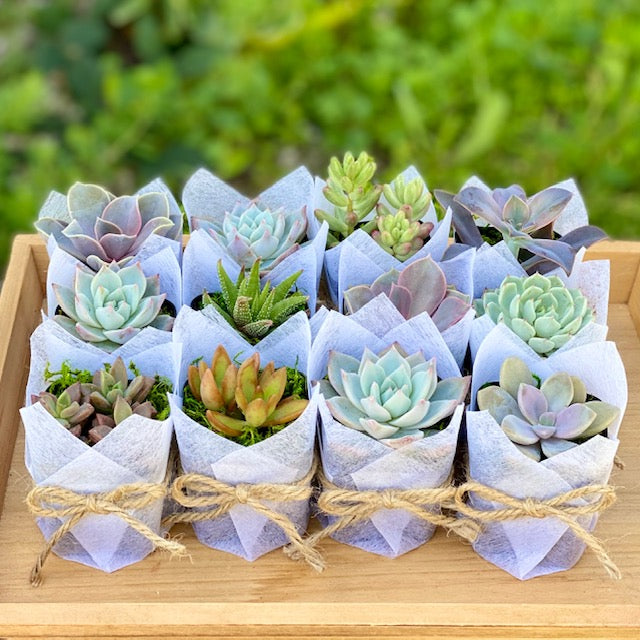 Succulent is easy care. Place plant in bright area with natural indirect sunlight such as near window sill. Water every 10-14 days and let soil dry completely between watering.